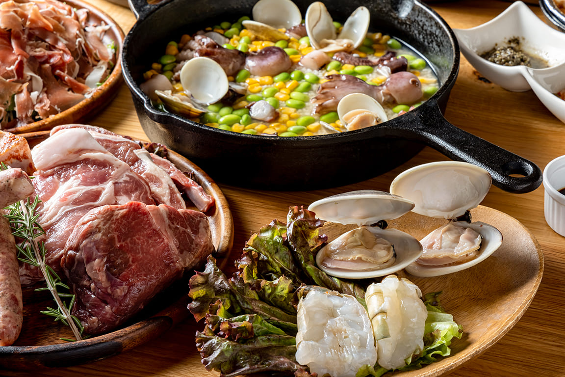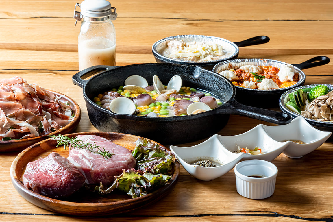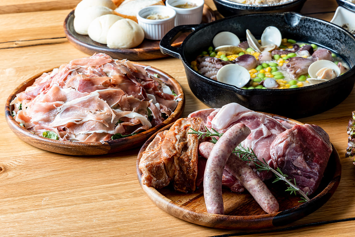 Assorted meats (Toyama Wagyu steak, Toyama pork, and 3 other selected meats)