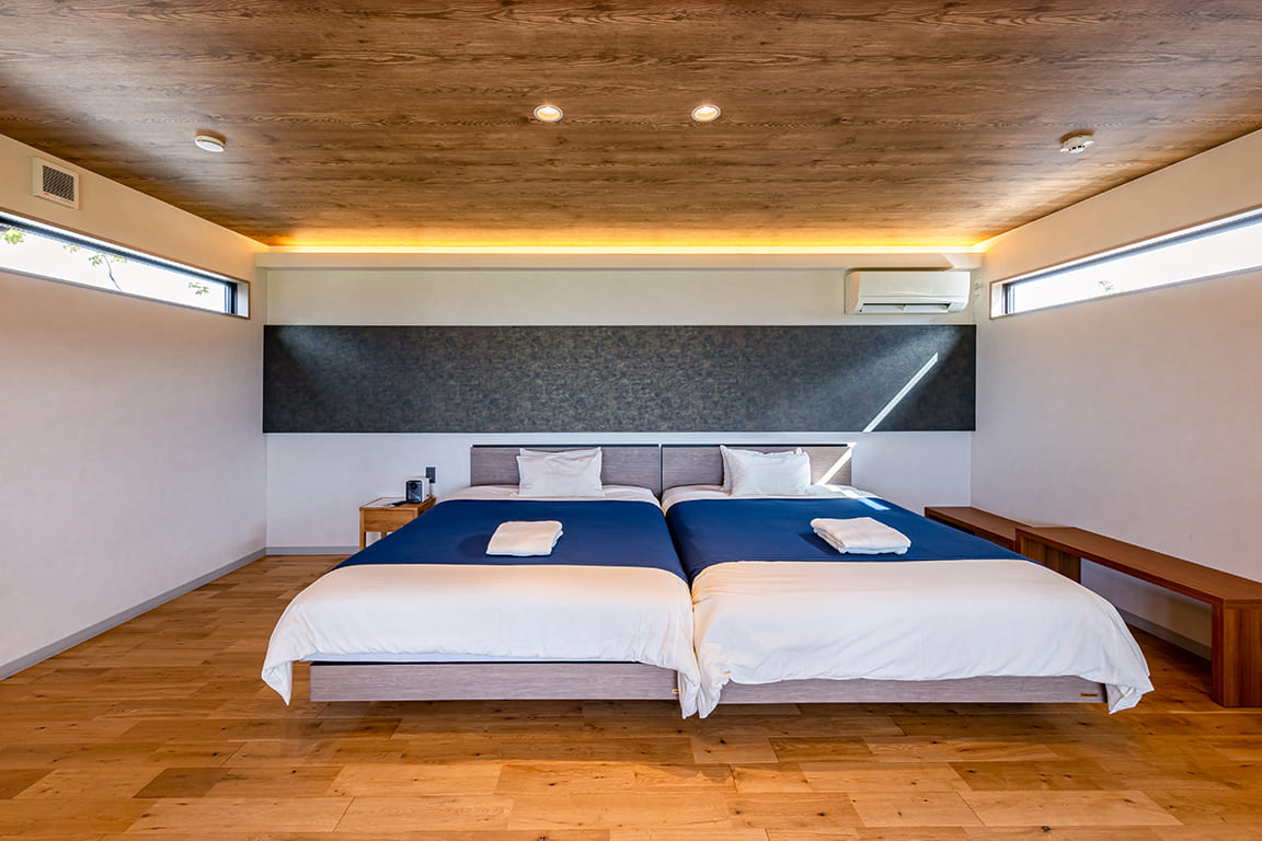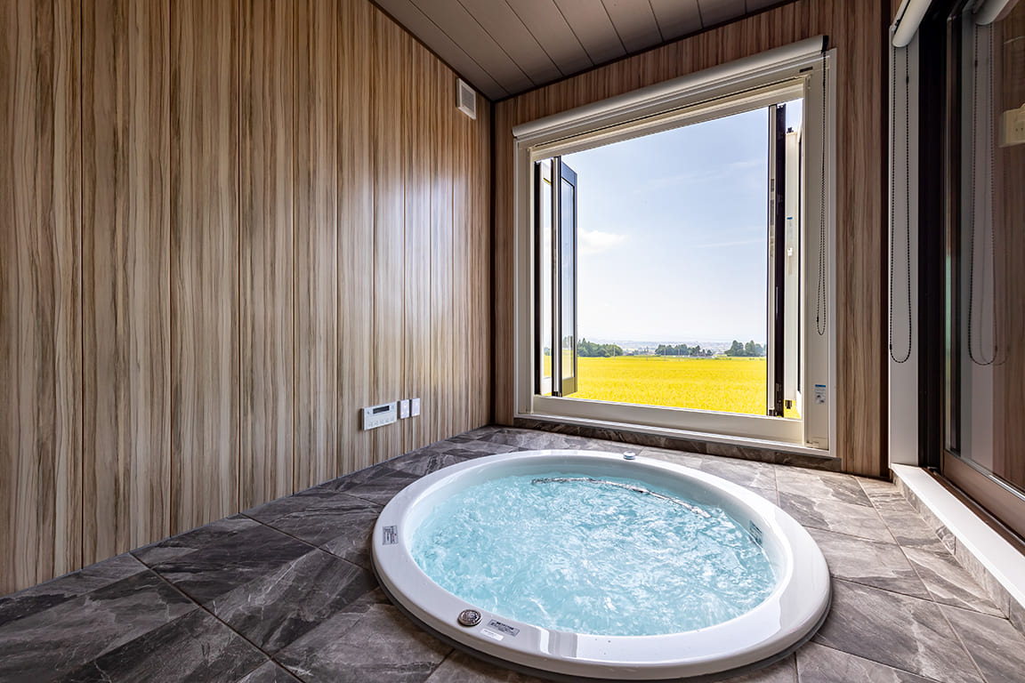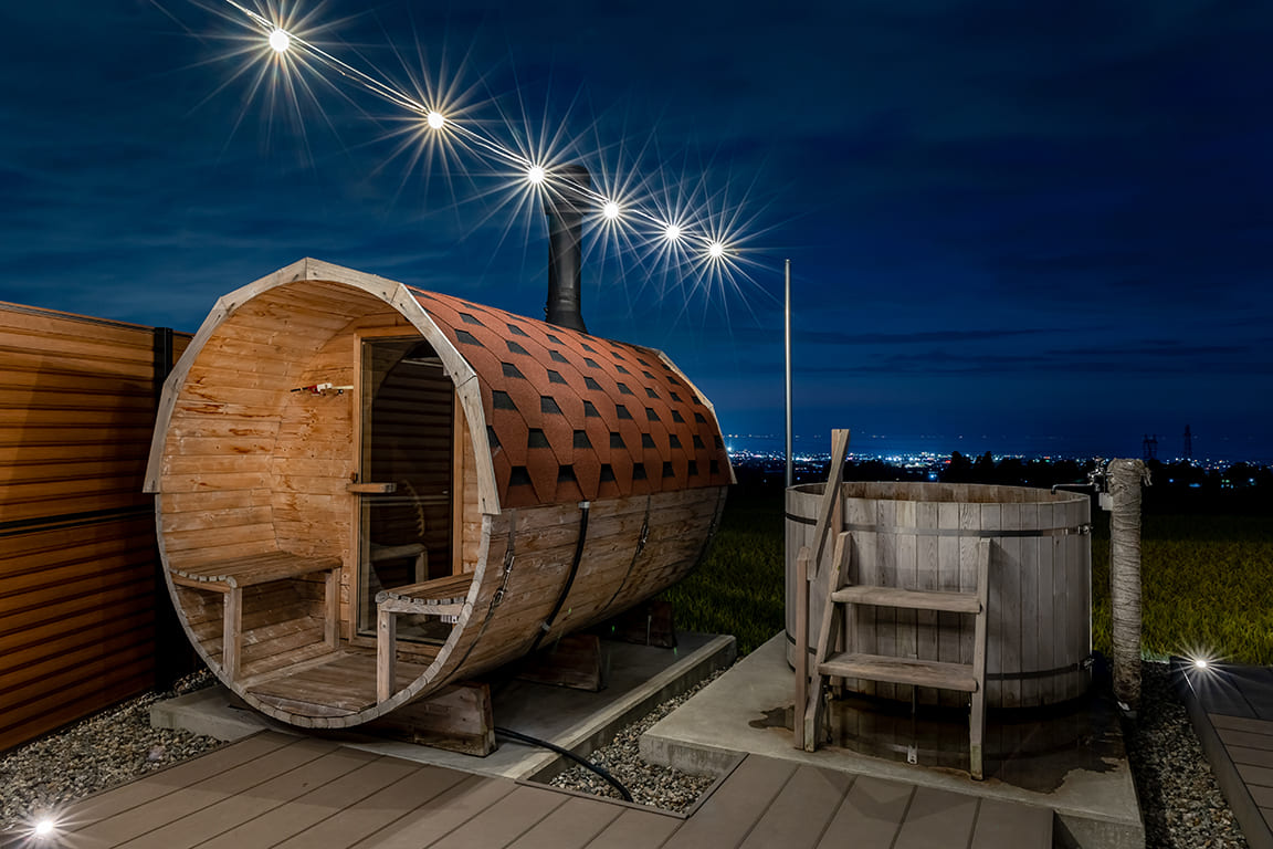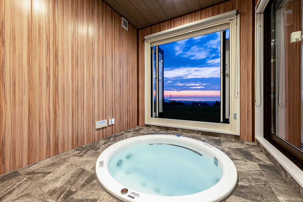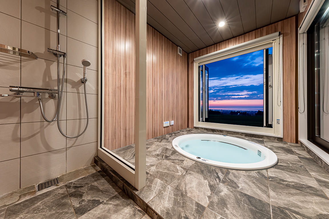 Equipped with a private dining area, sauna, and semi-open-air bath.