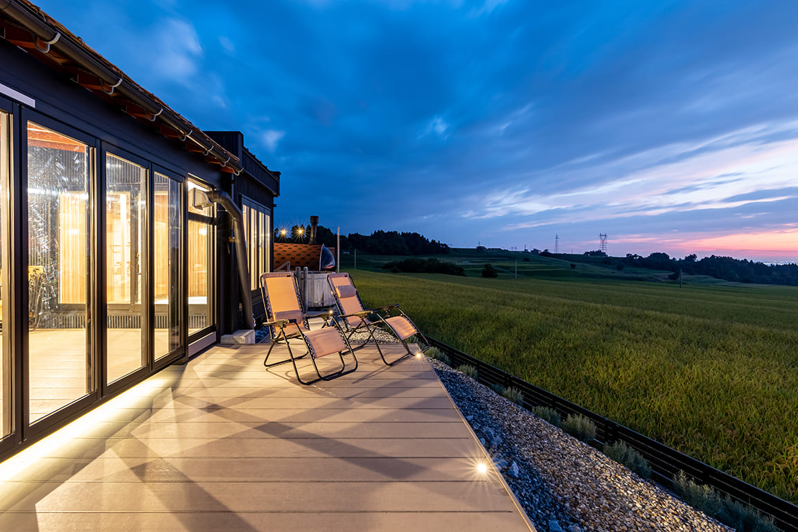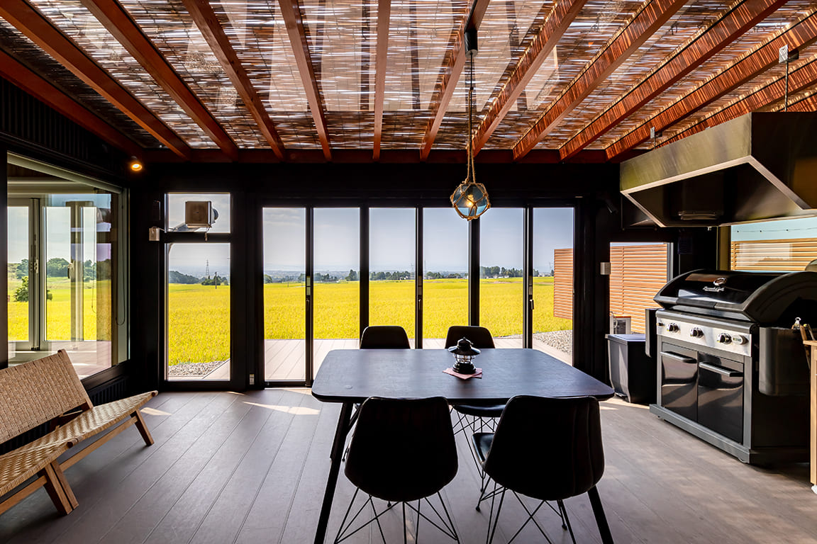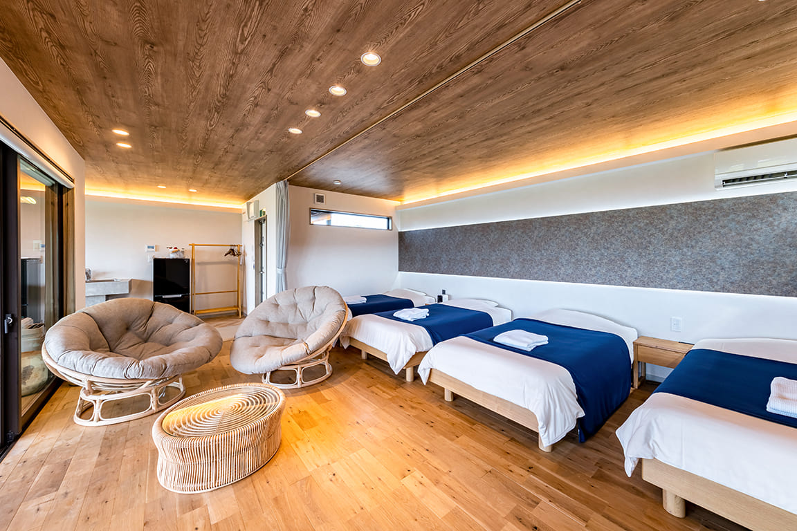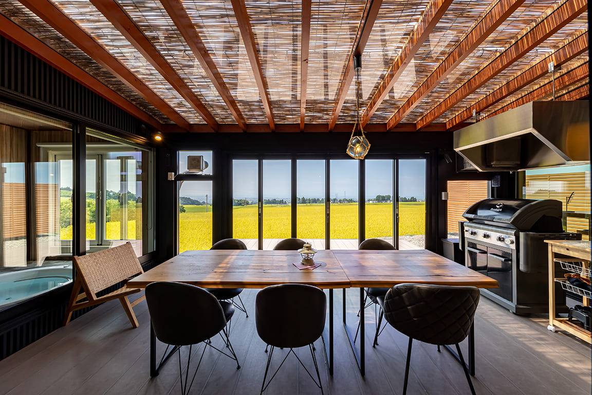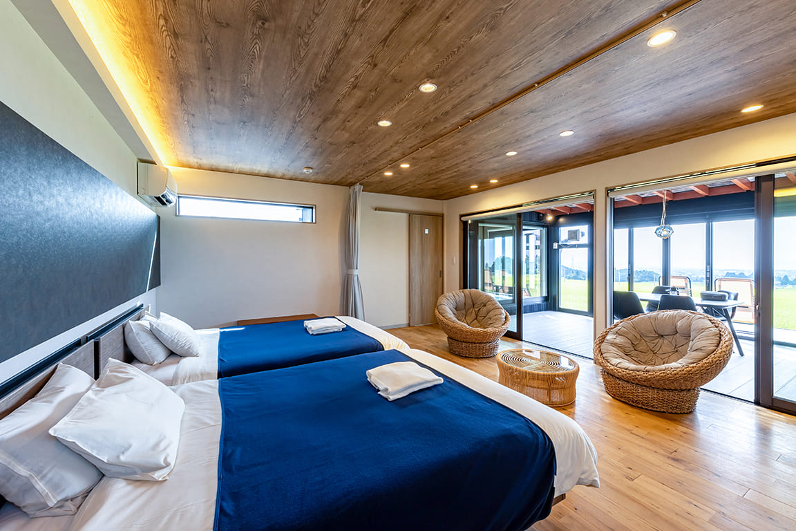 Equipped with a private dining area, sauna, and semi-open-air bath.