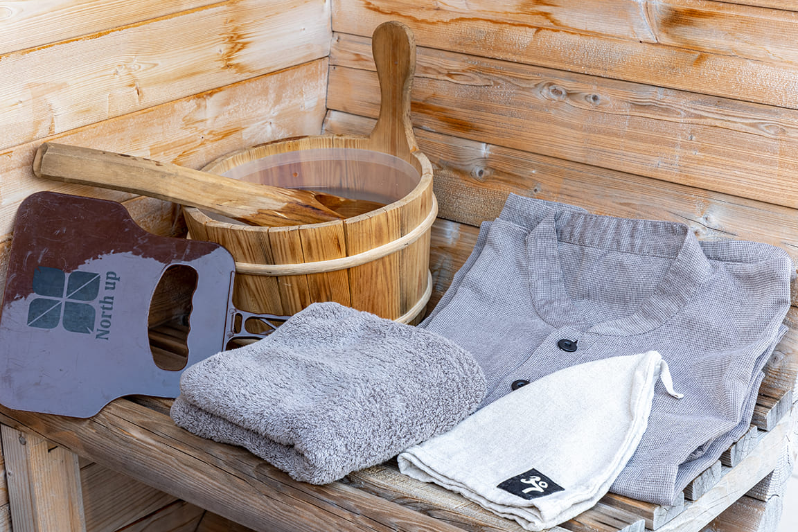 | Clothing | Pajamas, slippers, sauna poncho, sauna hat |